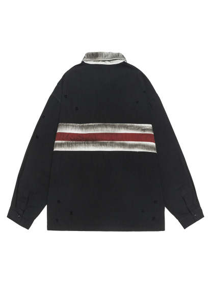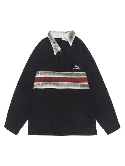Dirty-Dye Embroidered Long Sleeve Polo Shirt