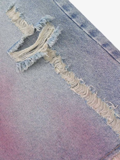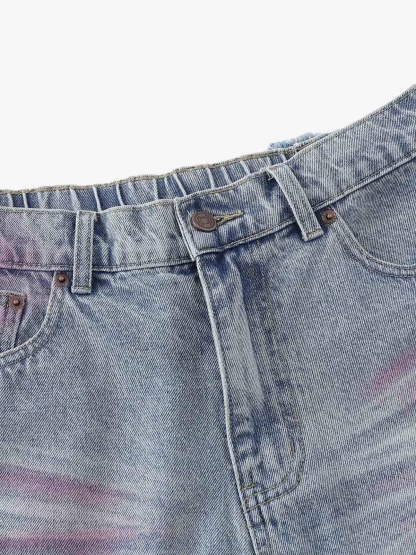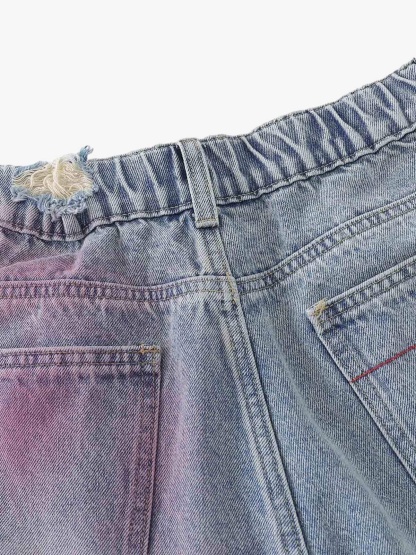 Distressed Tie-Dye Denim Jorts