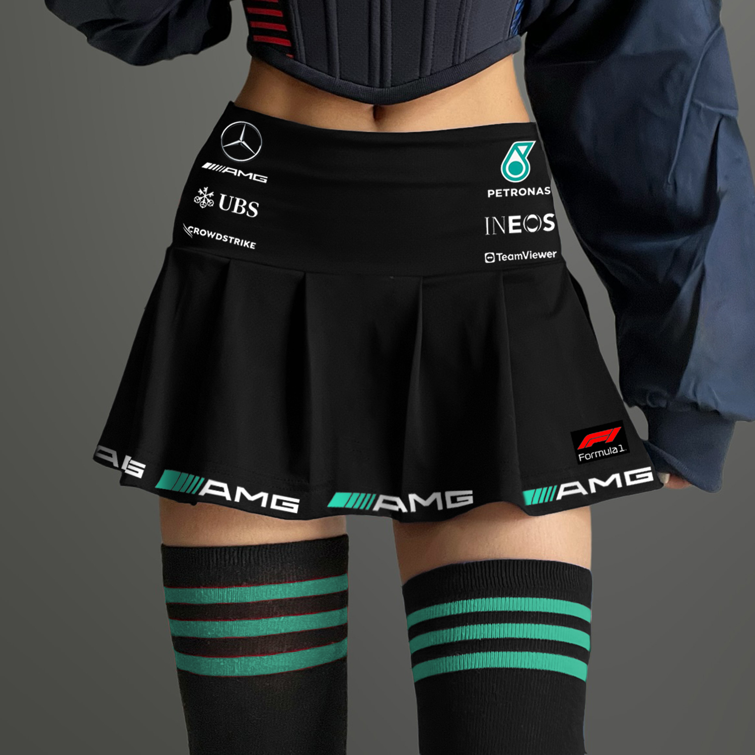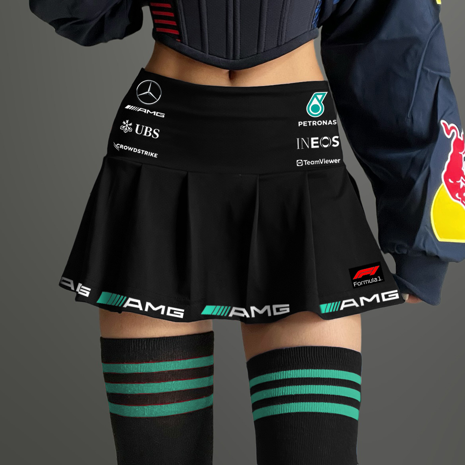 Formula-Inspired Racing Skirt with Team Logos for Sports Fans