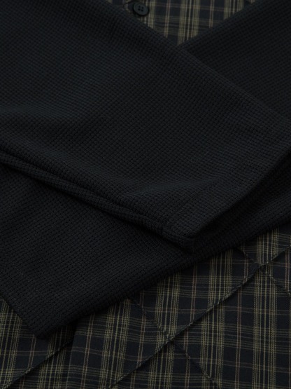 Heavy Plaid Pleated Striped Faux Two-Piece Polo Shirt