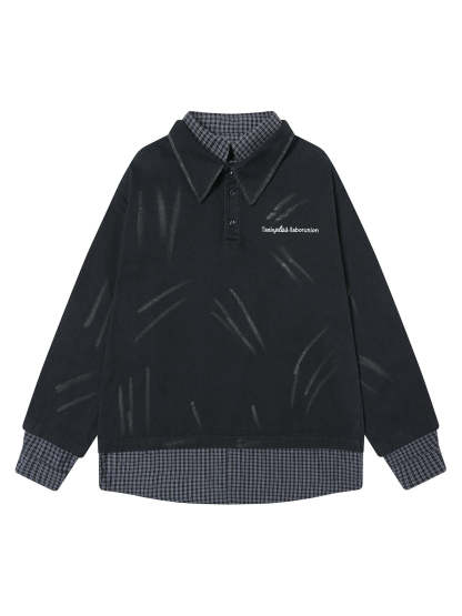 Wasteland Style Retro Washed Faux Two-Piece Shirt